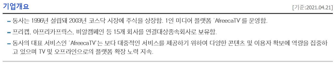 국내 최초 1인 방송 플랫폼 기업으로 라이브커머스 시장 확대에 따라 다양한 플랫폼 변화가 기대되는 기업