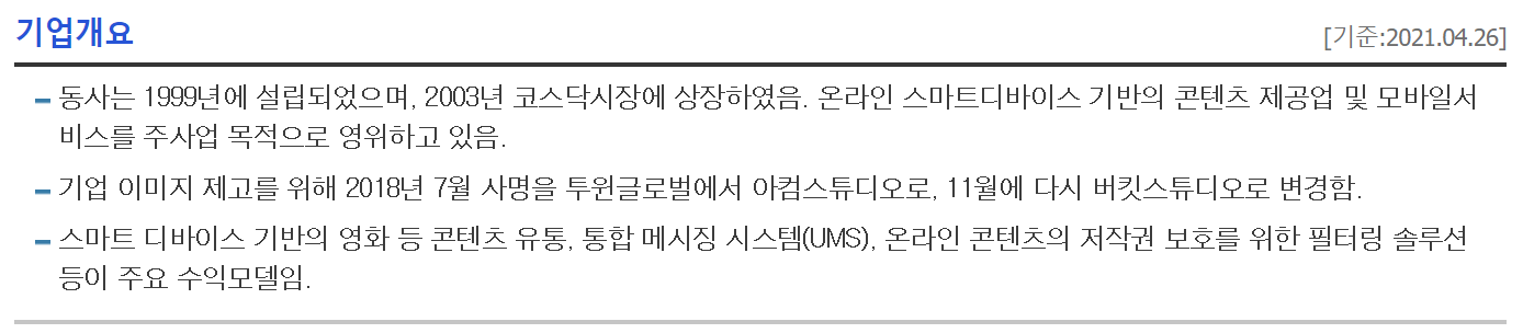 온라인 콘텐츠유통을 위해 필수 기술인 필터링 솔루션과 유통사업 및 온라인 기반의 라이브 커머스를 위한 컨설팅, 대행, 방송, 판매 등 사업을 영위하는 기업으로 최근 다양한 기업들의 라이브커머스를 대행하고 컨설팅 해주고 있어 라이브커머스 시장의 규모가 커질 수록 사업 확장이 기대되는 기업